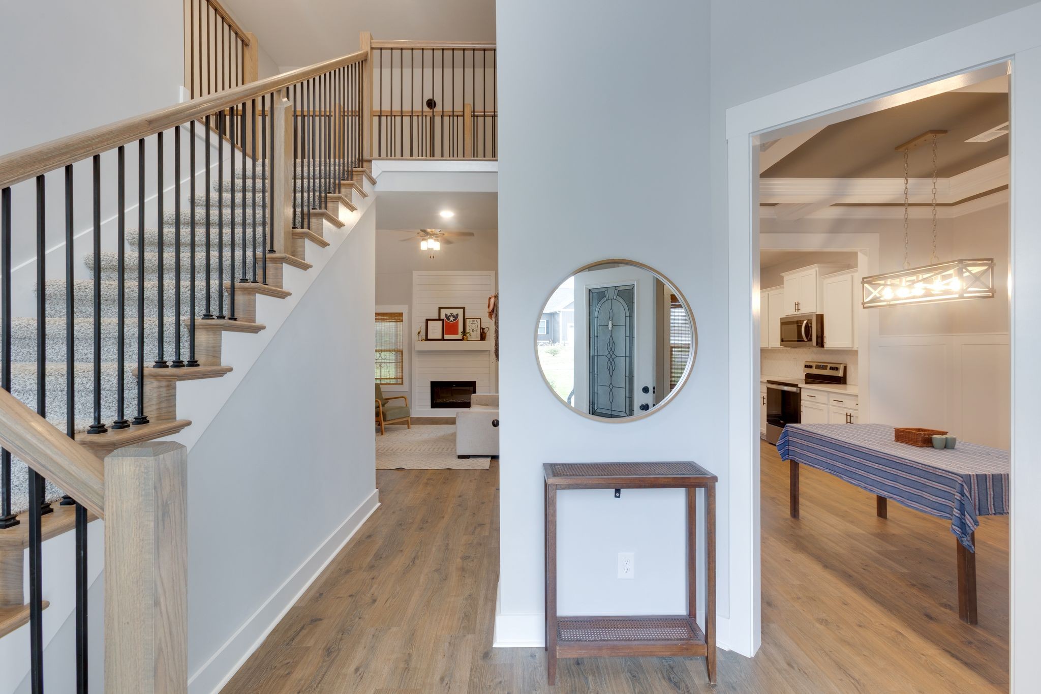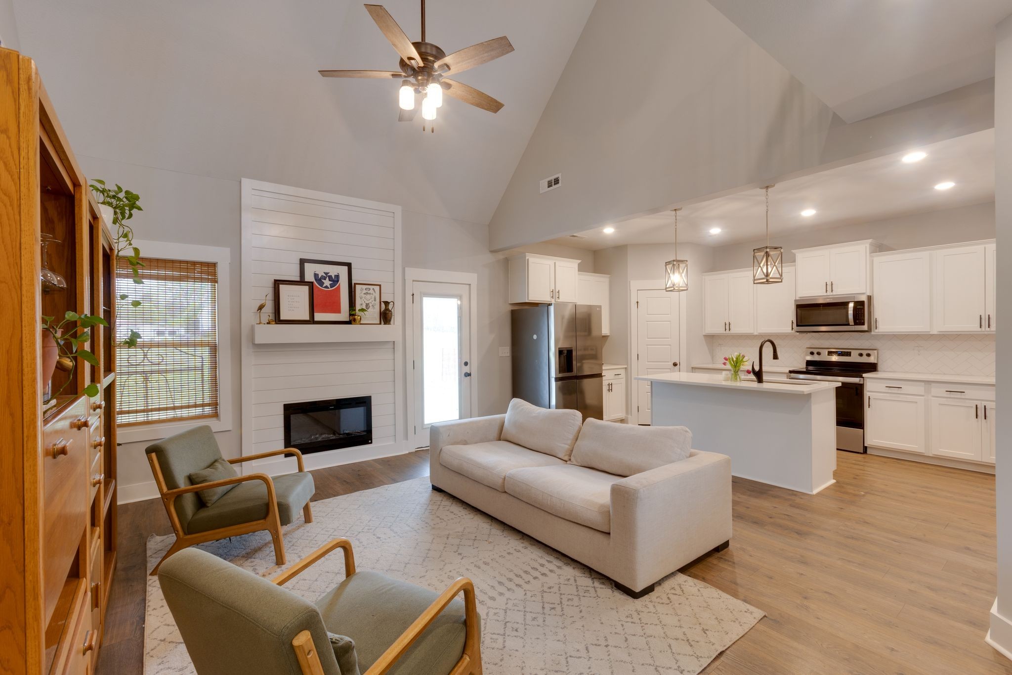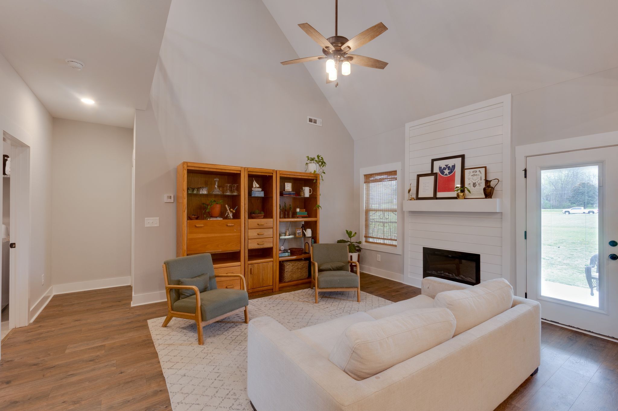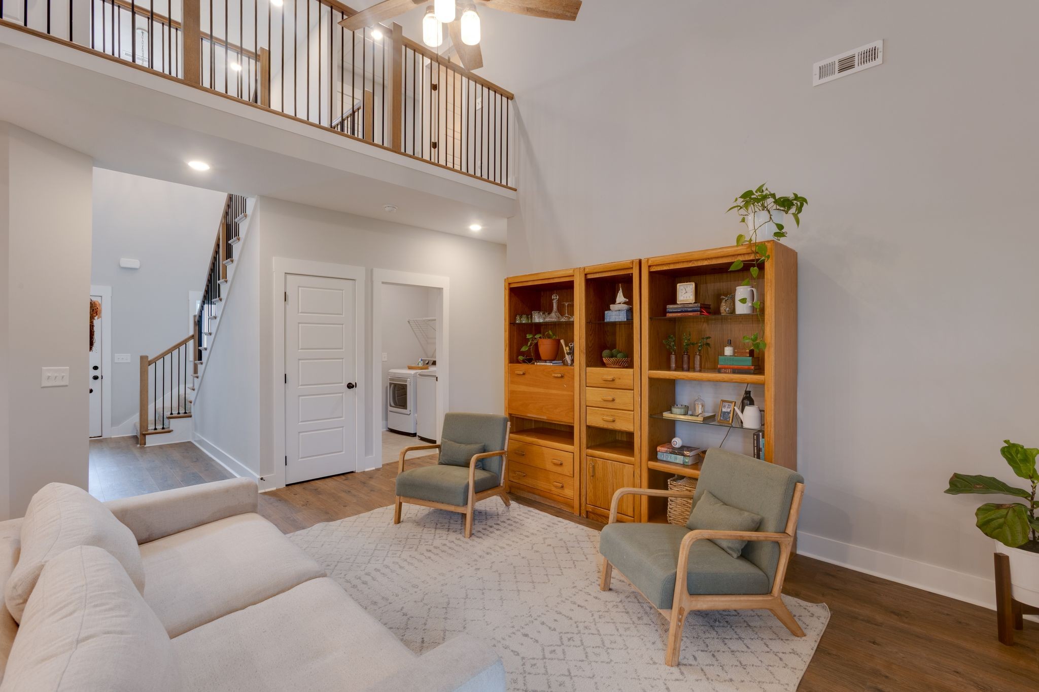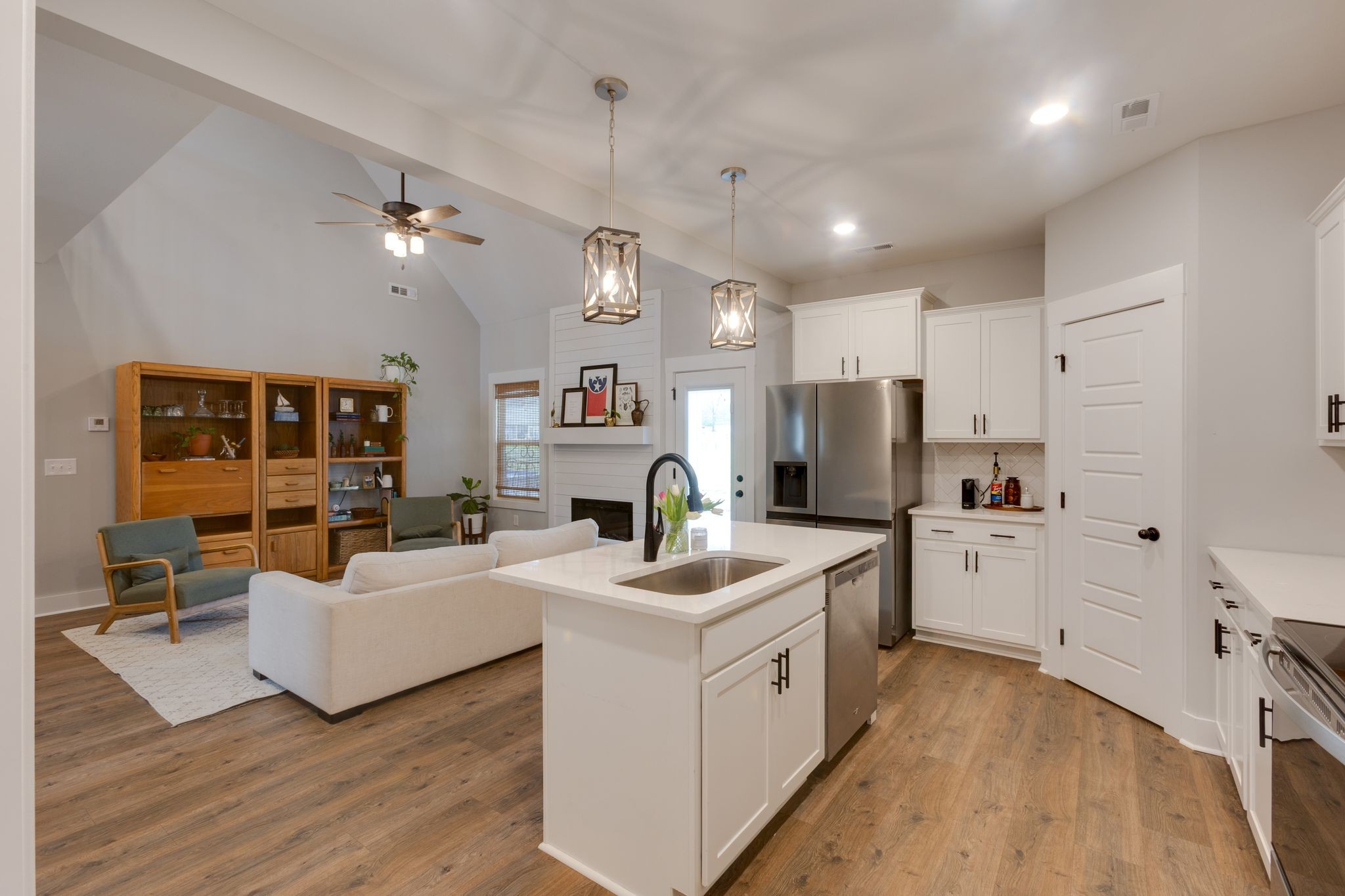 Stunning 2022-built home offering modern finishes and thoughtful updates throughout. The open-concept main level features a soaring living room ceiling that flows into a kitchen with stainless appliances, quartz countertops and a roomy pantry – Perfect for everyday living and entertaining. The main floor primary suite is a private retreat with a generous primary bath and walk in closet. Upstairs, the homeowners have smartly finished the walk-in attic space into a fun, flexible 20x17 bonus room. This room has luxury vinyl flooring and a nice walk in closet. Ideal space as a playroom, media room or home office. Clean lines, contemporary material and a functional layout make this home move-in ready. Schedule your showing today to see all the features and possibilities in person. 10 mins off the Hwy 96 - interstate 40 exit.
